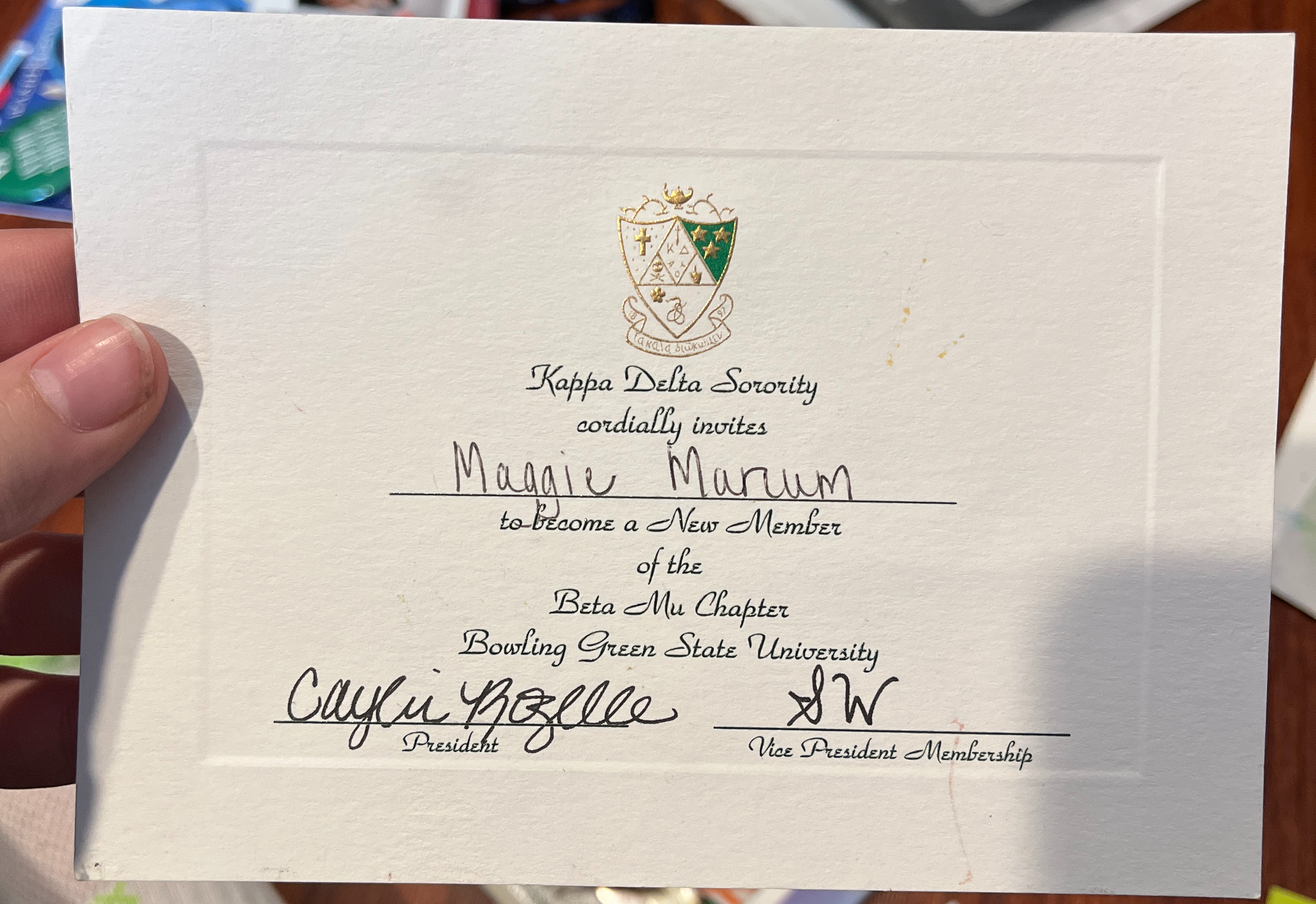 If you couldn’t tell where this was going: I received a bid from Kappa Delta.