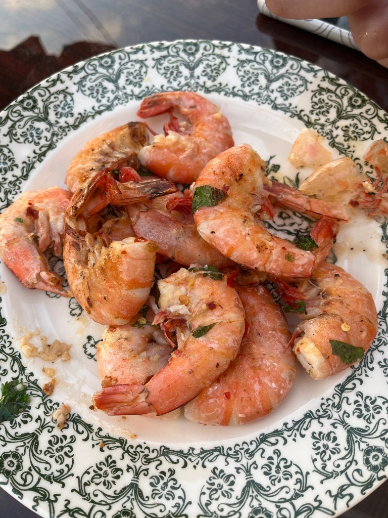 The lamb and shrimp both had olive oil, lemon juice, cilantro, garlic, salt and pepper, smoked paprika, red pepper flakes, and onion powder.